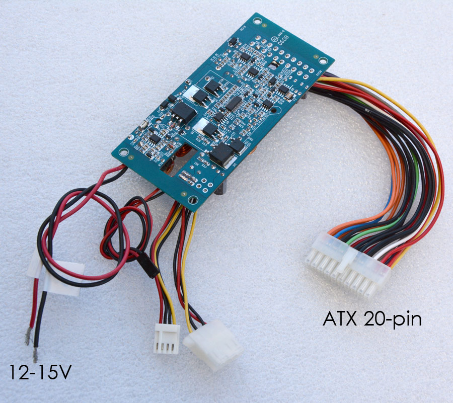 The ATX (20-PIN) connection from 12 to 15 volt input voltage (slide voltage) (for standard motherboard)