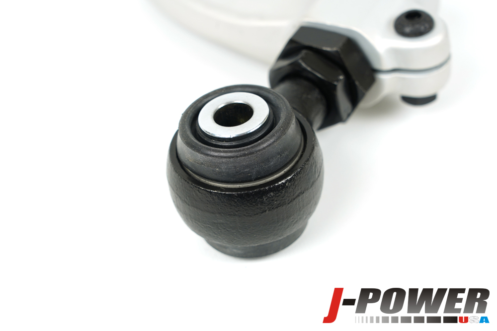 J-Power Rear Camber Correction Kit - 2 Pcs Control Arm Forged aluminum with spherical pillow ball bushing on adjusting end and rubber bushing on pivoting end.