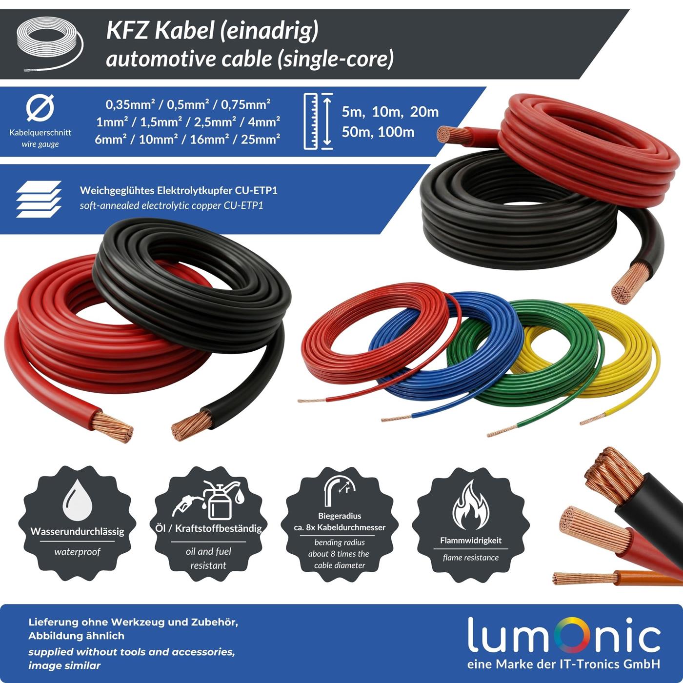 100m FLRY Fahrzeugleitung 0,35mm² rund Kabel Litze KFZ Stromkabel