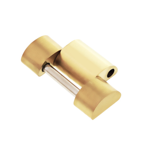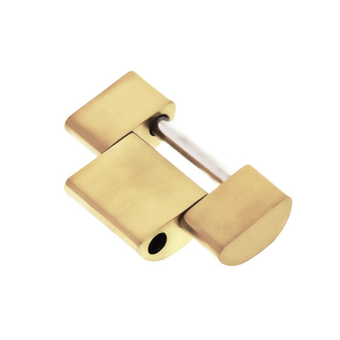 This link features a shiny center with a brushed finish on the sides. The ionic vacuum plating process provides a durable gold-colored finish. No logo or markings on the link.