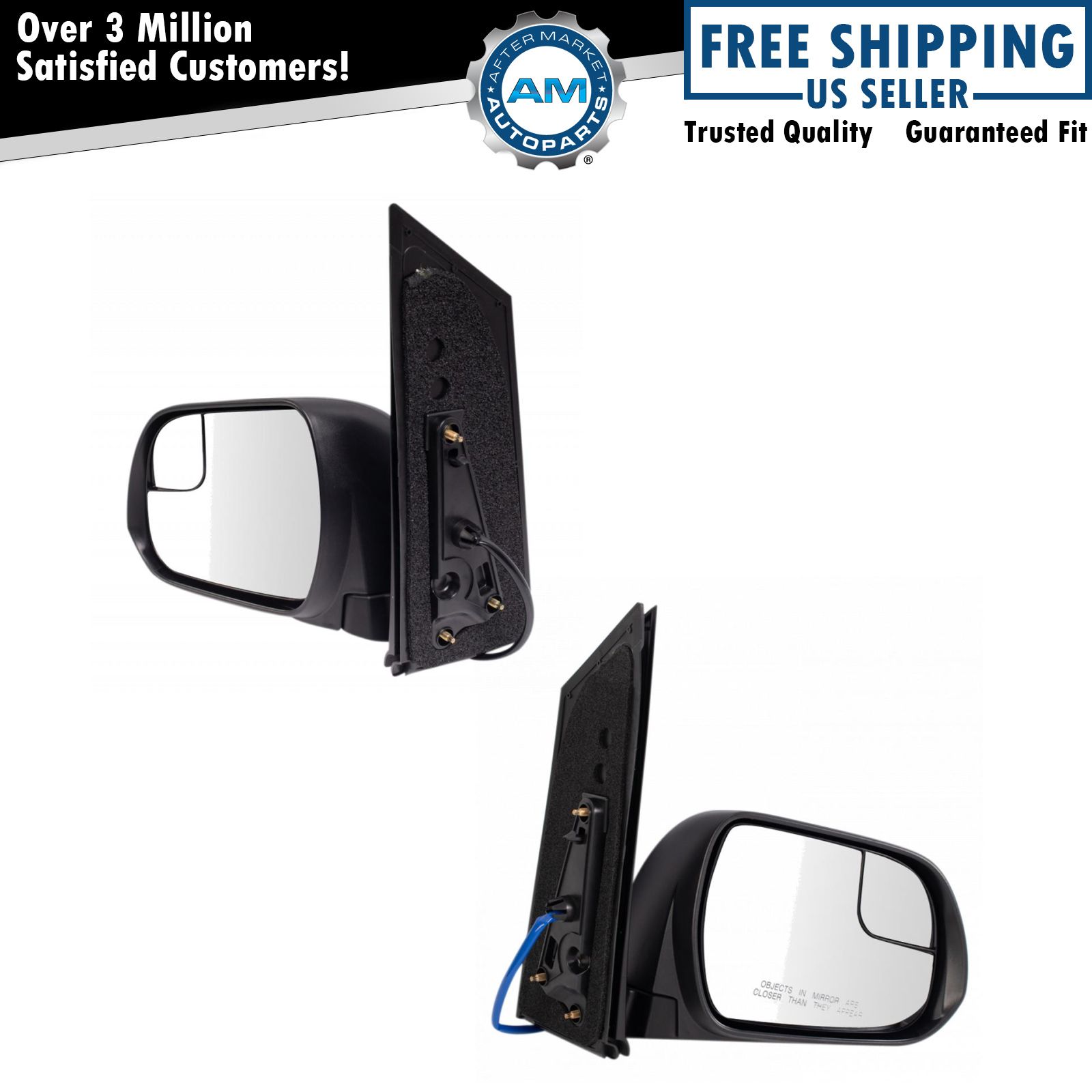 2015-2018 Toyota Sienna Driver & Passenger Side 2 Piece Power Without Memory Textured Black Spotter Glass Mirror Set without Heat