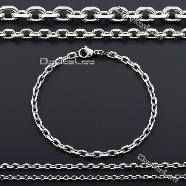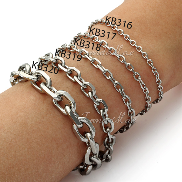 Customize 9/10MM Cable Silver Stainless Steel Bracelet Mens Chain Boys