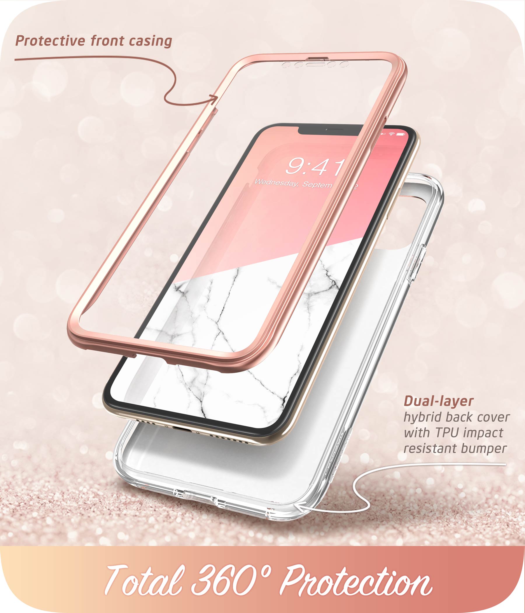360-degree coverage features a shock-absorbent TPU bumper and scratch-resistant Polycarbonate back plate