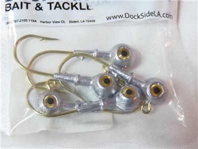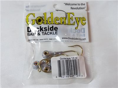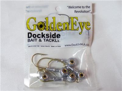 New In Package Dockside Golden Eye Jig Head for Matrix Shad Soft Plastic Bait. These are 1/4 oz. each and there are 5 pieces in the package. Work great in Salt or Fresh Water.