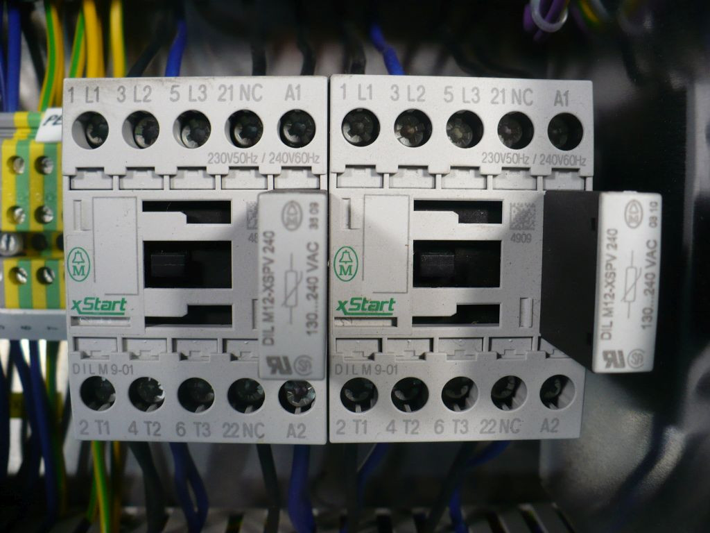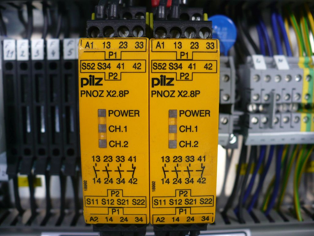 This is a used power supply Mounting Panel. The panel has a Mean Well SDR-240-24, Pilz PNOZ X2.8P, and a Moeller xSart xPole installed on the panel. The panel also has some other DIN mounting wiring connectors. Panel is 17.25" wide and 11" tall.