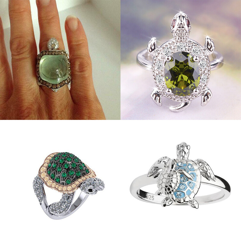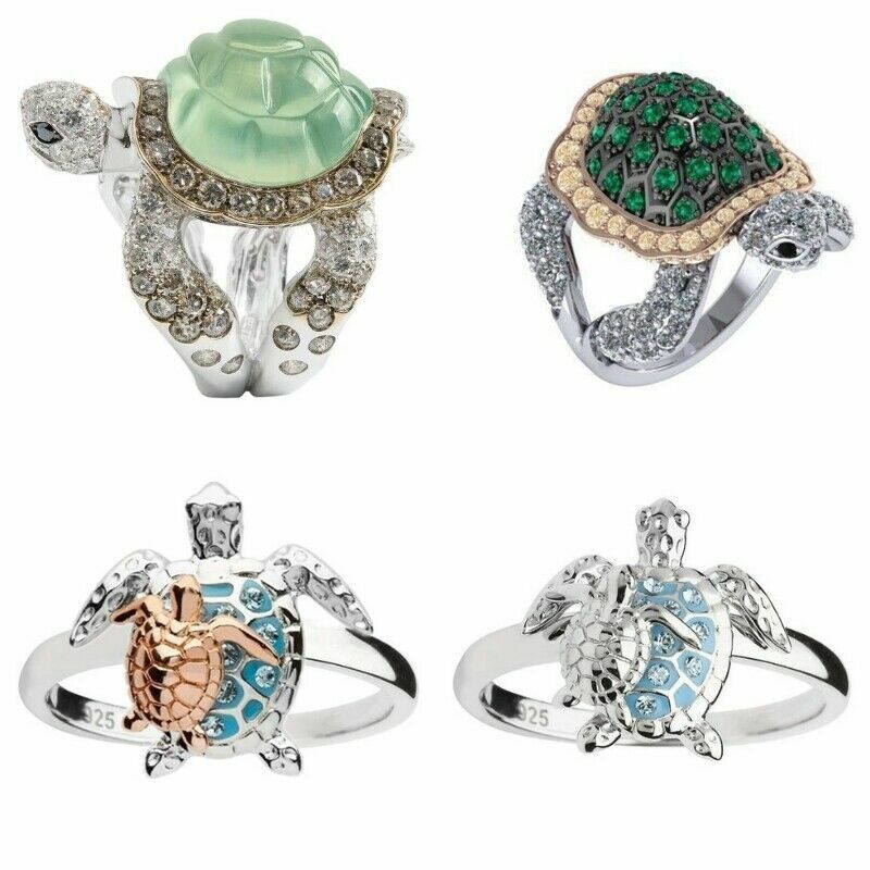 Women Ring Wedding Jewelry Engagement Turtle Rings Finger Silver Emerald