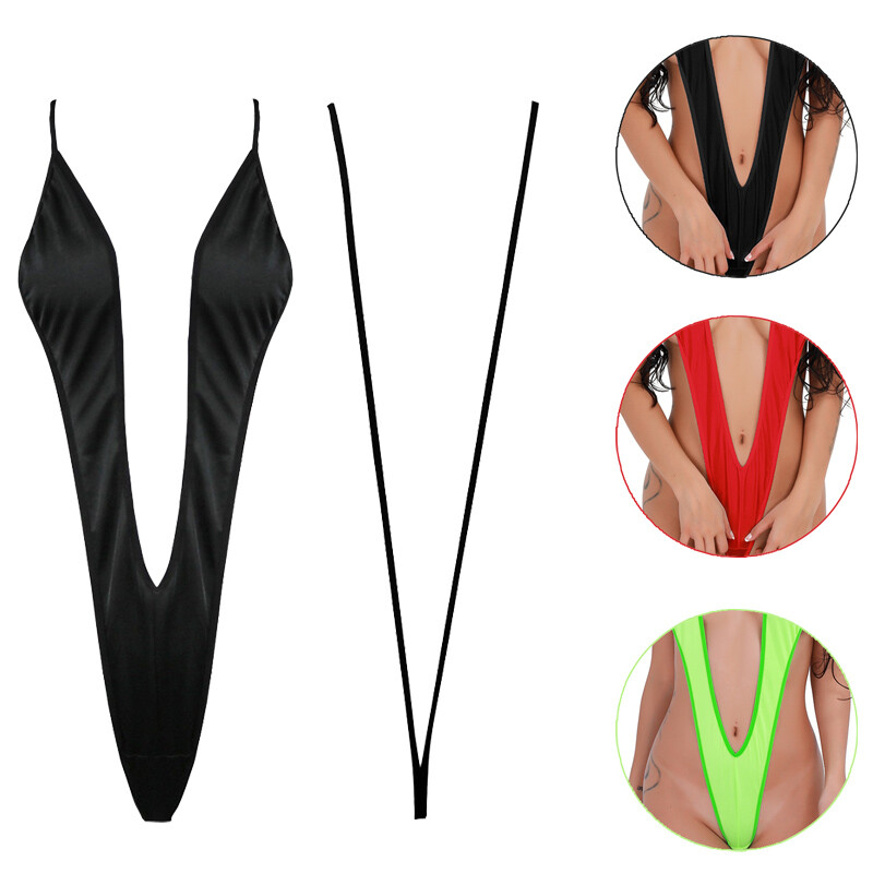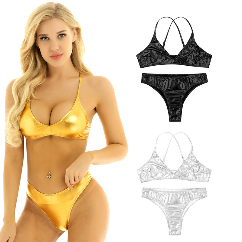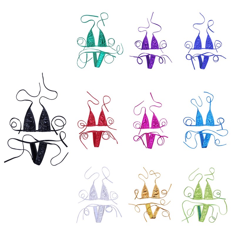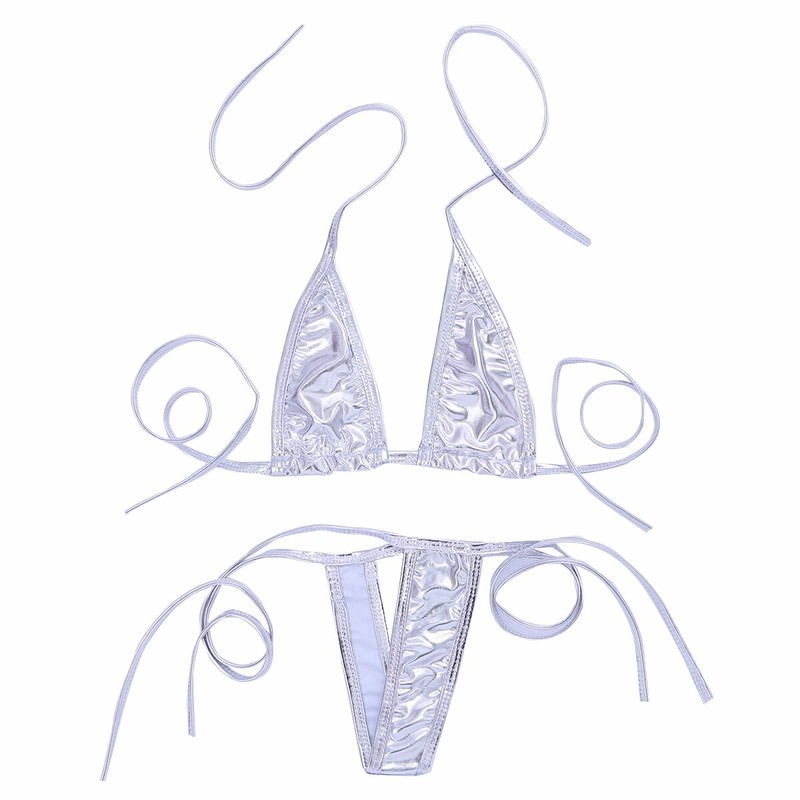 Frauen Glanz Bikini Set Micro BH Bra String Tanga Wetlook Dessous Schwimmanzug