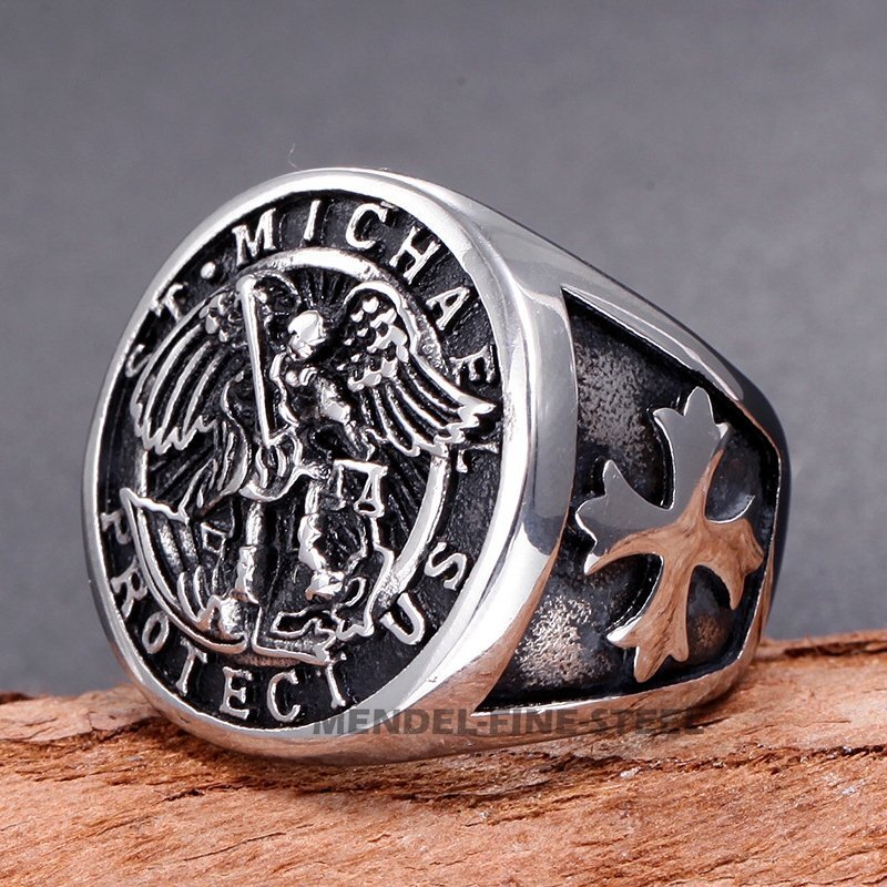 MENDEL Mens Stainless Steel Catholic Archangel St Saint Michael Ring Size 7-14