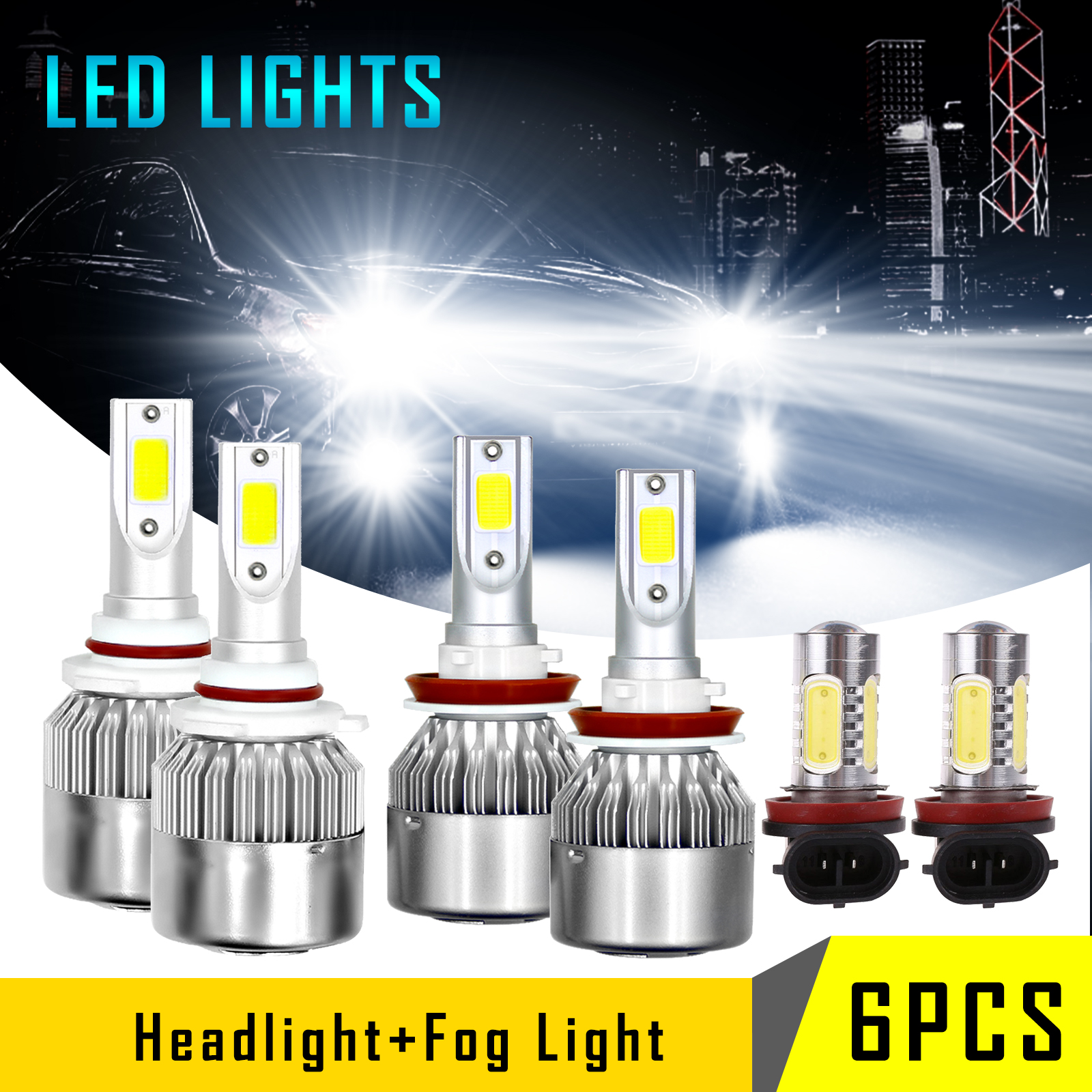 For 2007-2014 Toyota Camry Led Headlight Hi/Lo+Fog light bulbs Combo White 6pcs