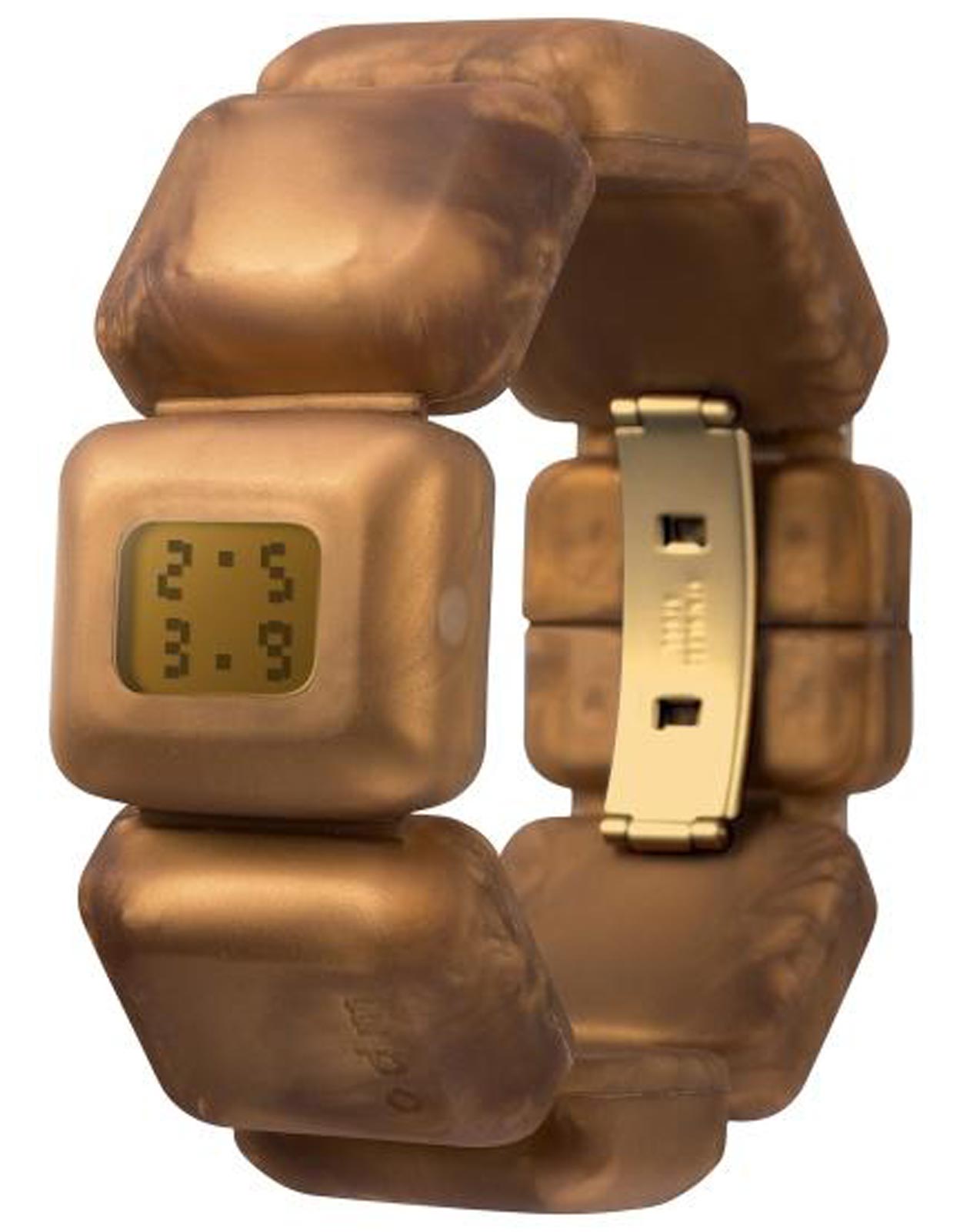 - Brown Silicone Band. Fits up to 7 inch wrist (Band not resizable).