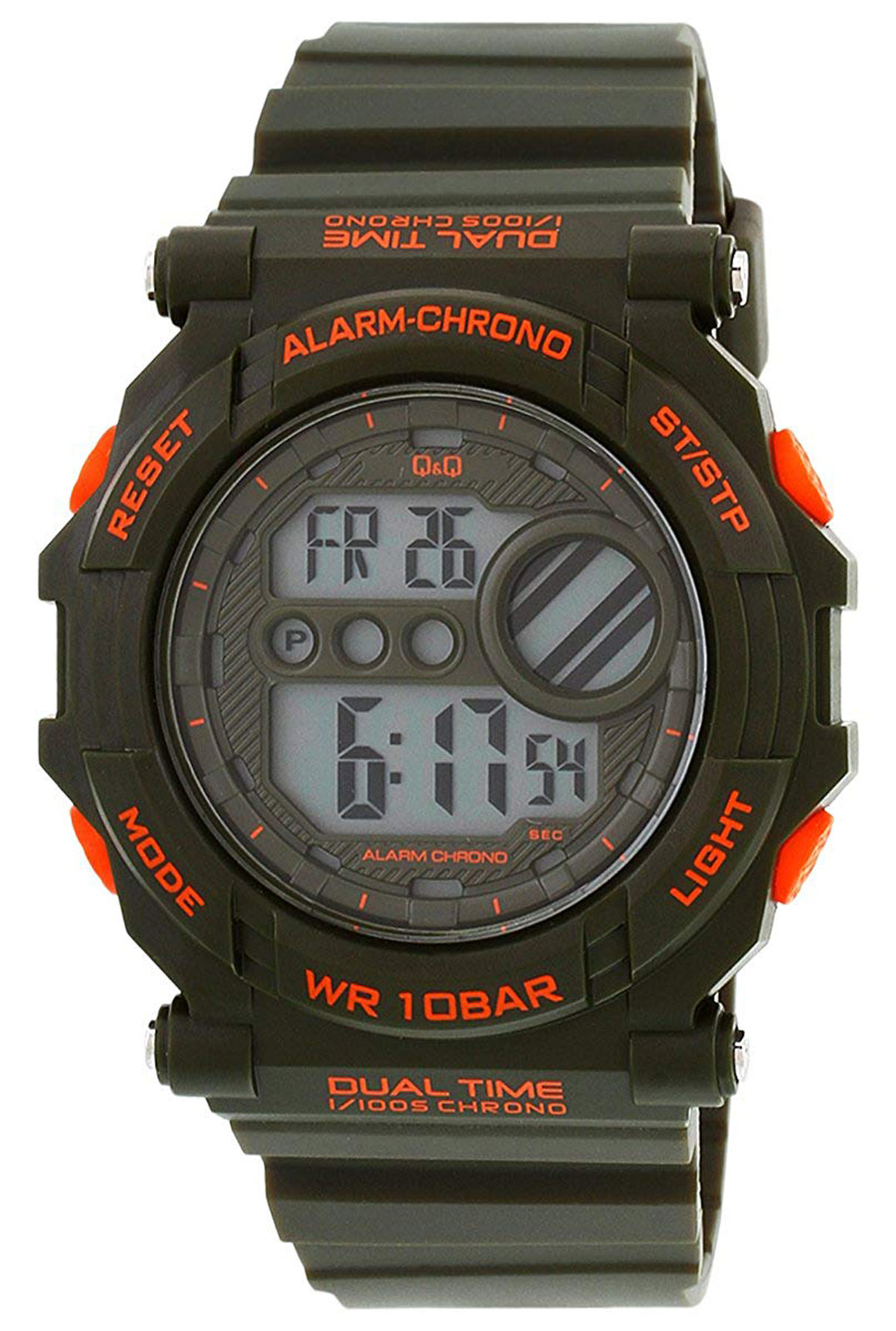 - Chronograph Functions, Alarm, Dual Time.