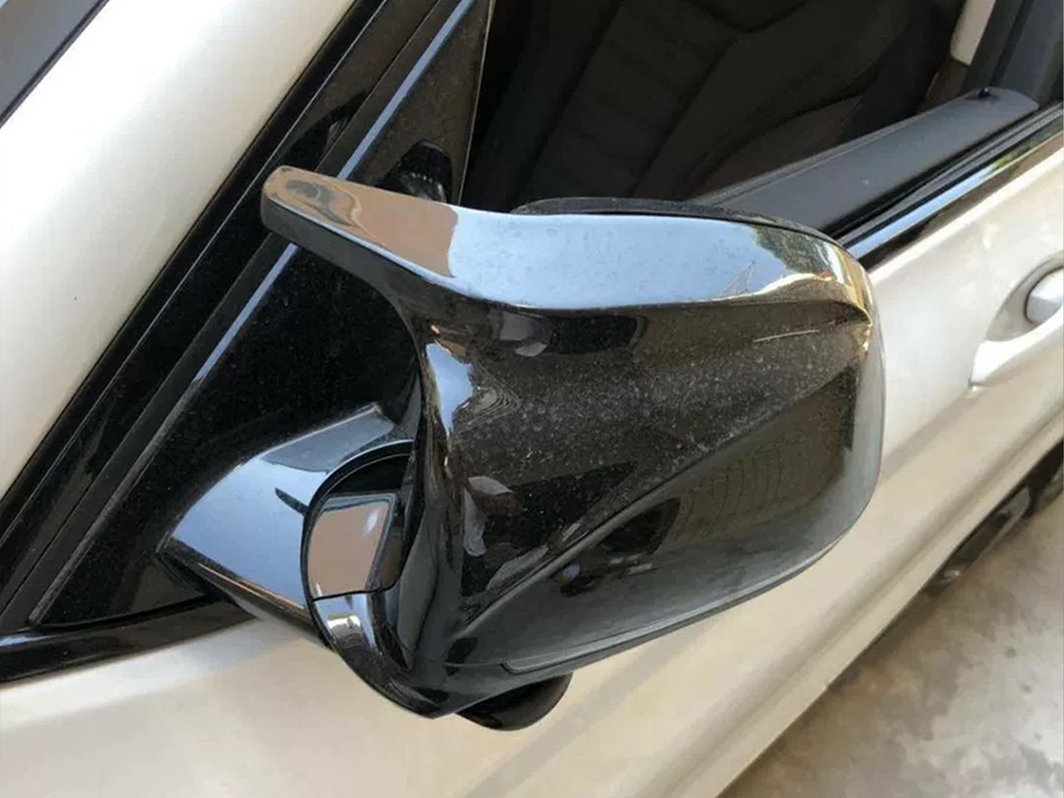 Die Außenspiegelkappen werden von Hand lackiert. Manchmal kann es nicht so perfekt sein, besonders die Rückseite. Bei diesem Verfahren ist es schwierig eine 100% Sauberkeit zu gewährleisten. Diese minimale Unterschiede sind allerdings annehmbar (sehe das Bild).