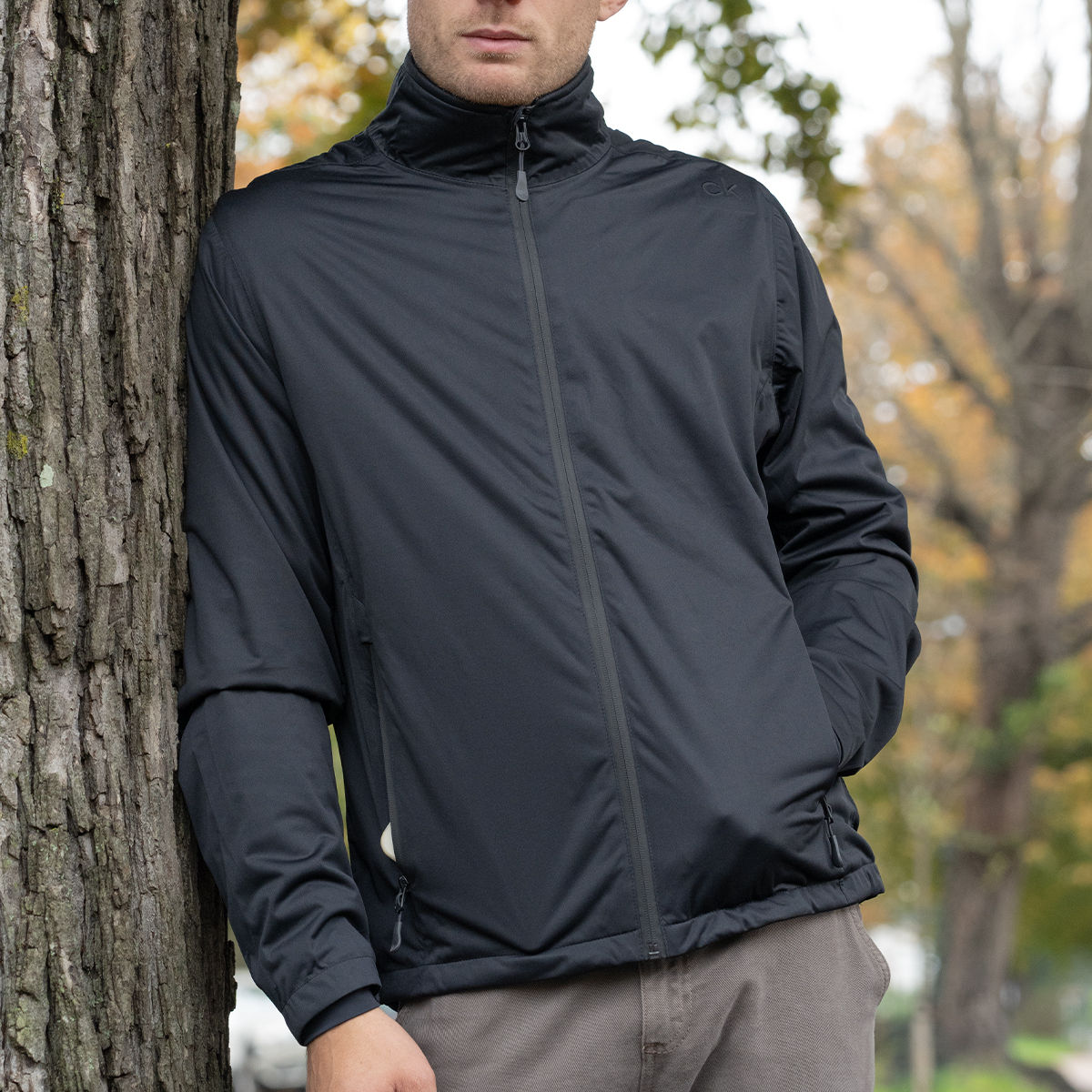 Confidence comes as standard with Calvin Klein’s waterproof jacket that comes with a host of features to ensure you stay dry and comfortable throughout your round. Noiseless technology lets you concentrate on your game without the distraction of a fabric rustle. Featuring an inner comfort cuff and fleece lined inside collar for enhanced fit and comfort. Finished with a CK logo on left chest.