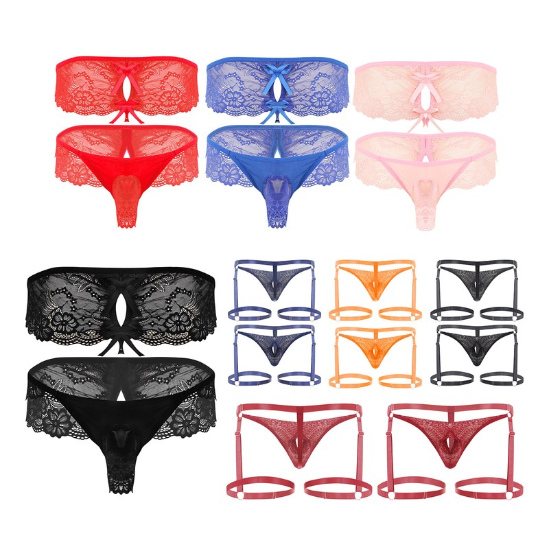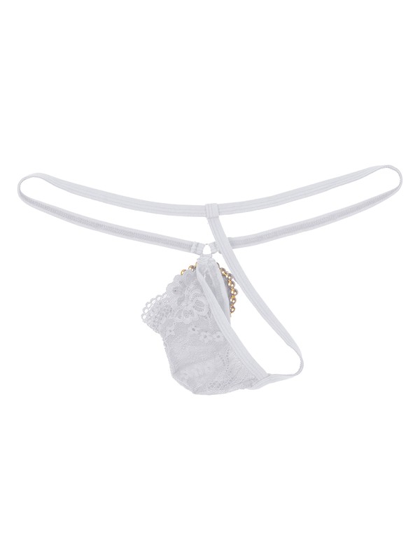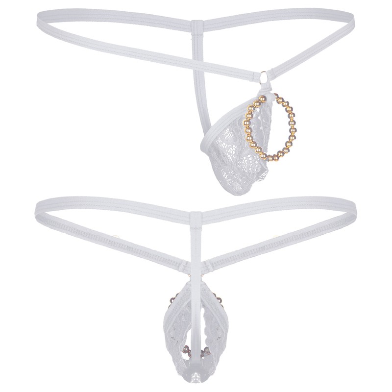 Hollow out lace bulge pouch with beaded o ring, makes you attractive to your lover.
