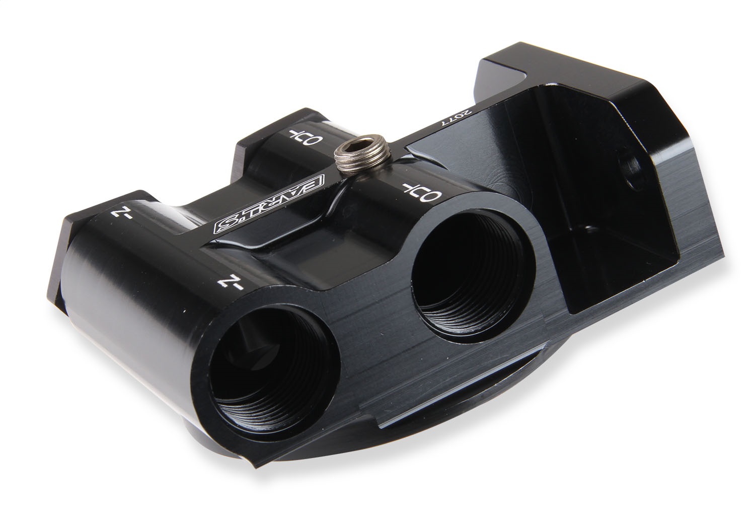 Move your oil filter to an easy to reach location with Earls new Billet Remote Oil Filter Mount. This new filter mount features 10 AN O-ring ports, 1/8 NPT port, and dual inlets / outlets for easy plumbing from either side. The kit includes the filter mount, plugs, and hardware. Lightweight aluminum with black anodized finish.
