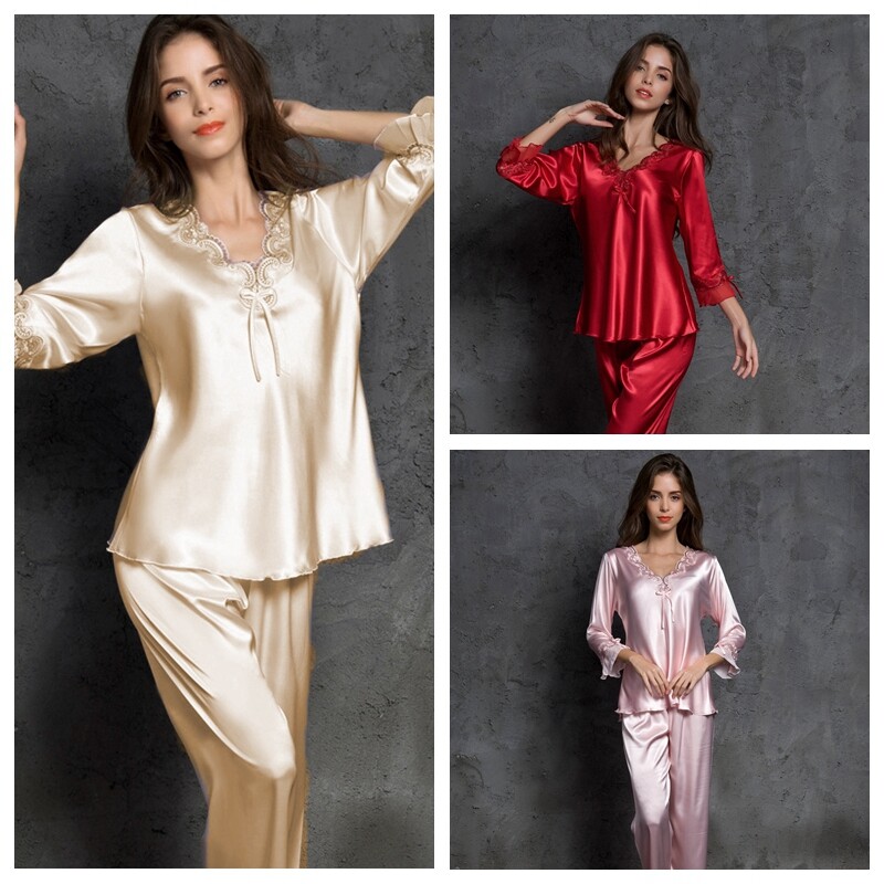 Womens Soft Silk Satin Pyjamas Set Loungewear Sleepwear Nightgown Sexy Home Wear