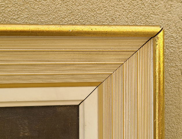 Wooden gold leaf with white ribbed deep frame. 1940-1950's