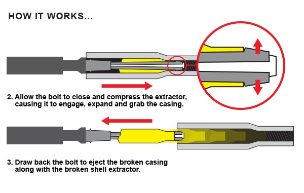 • Removes Broken Shell Casings Lodged in the Chamber of a Firearm