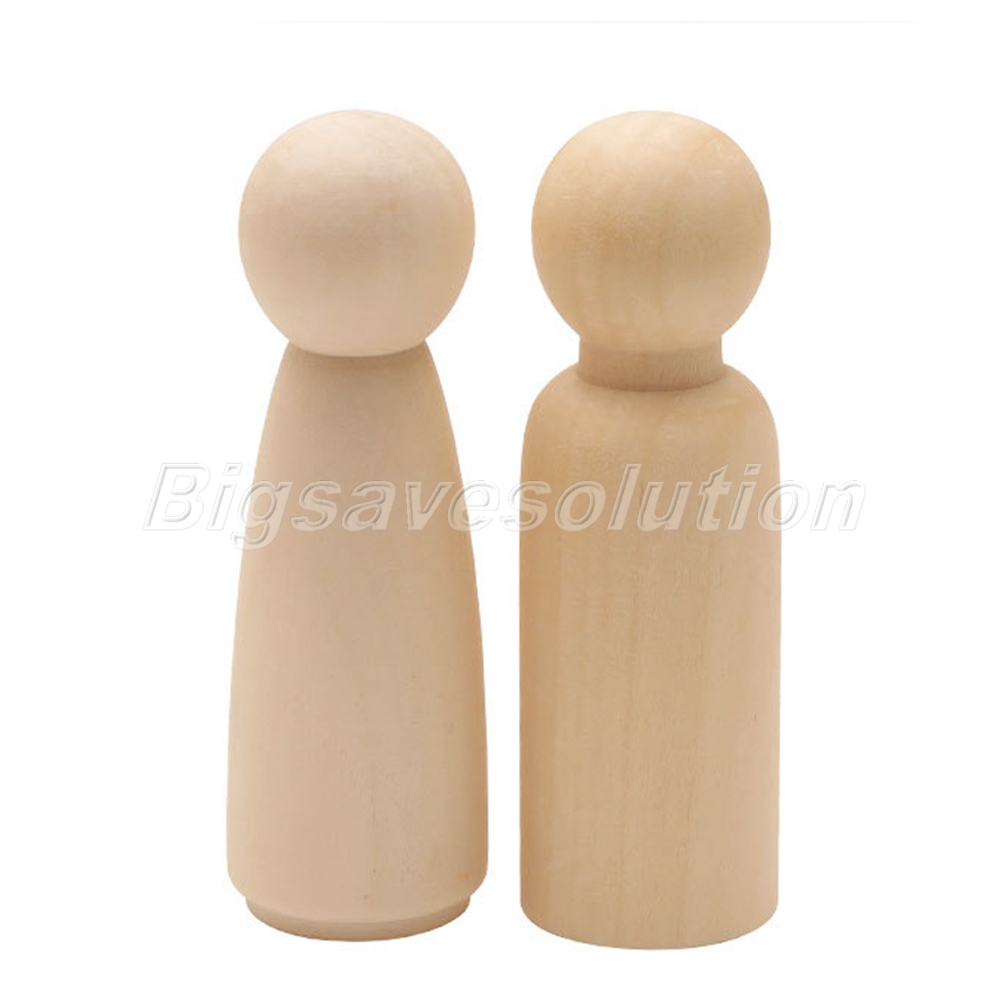 • 2Pcs 90mm Unfinished Natural Wooden Peg Dolls Wedding Cake Toppers 2 Pattern