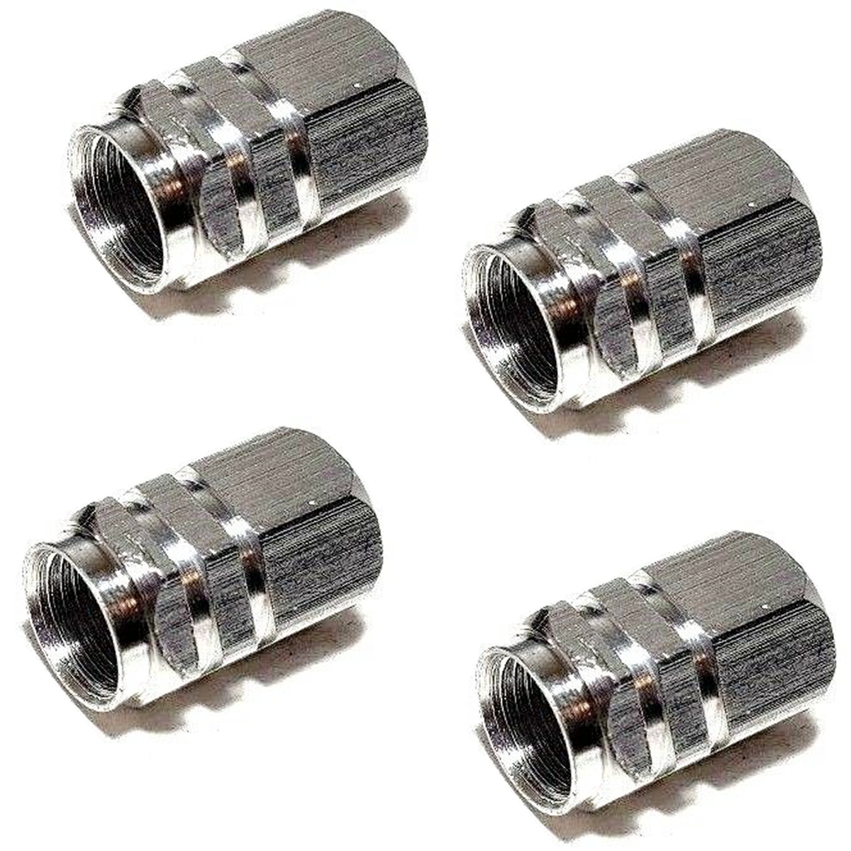 These beautiful Aluminum Tire Valve Stem Caps will replace your current boring plastic or stolen caps. Each cap is fitted with an O-ring to insure proper fit. Universal fit, 4 caps per set. Will make your ride stand out from the rest.