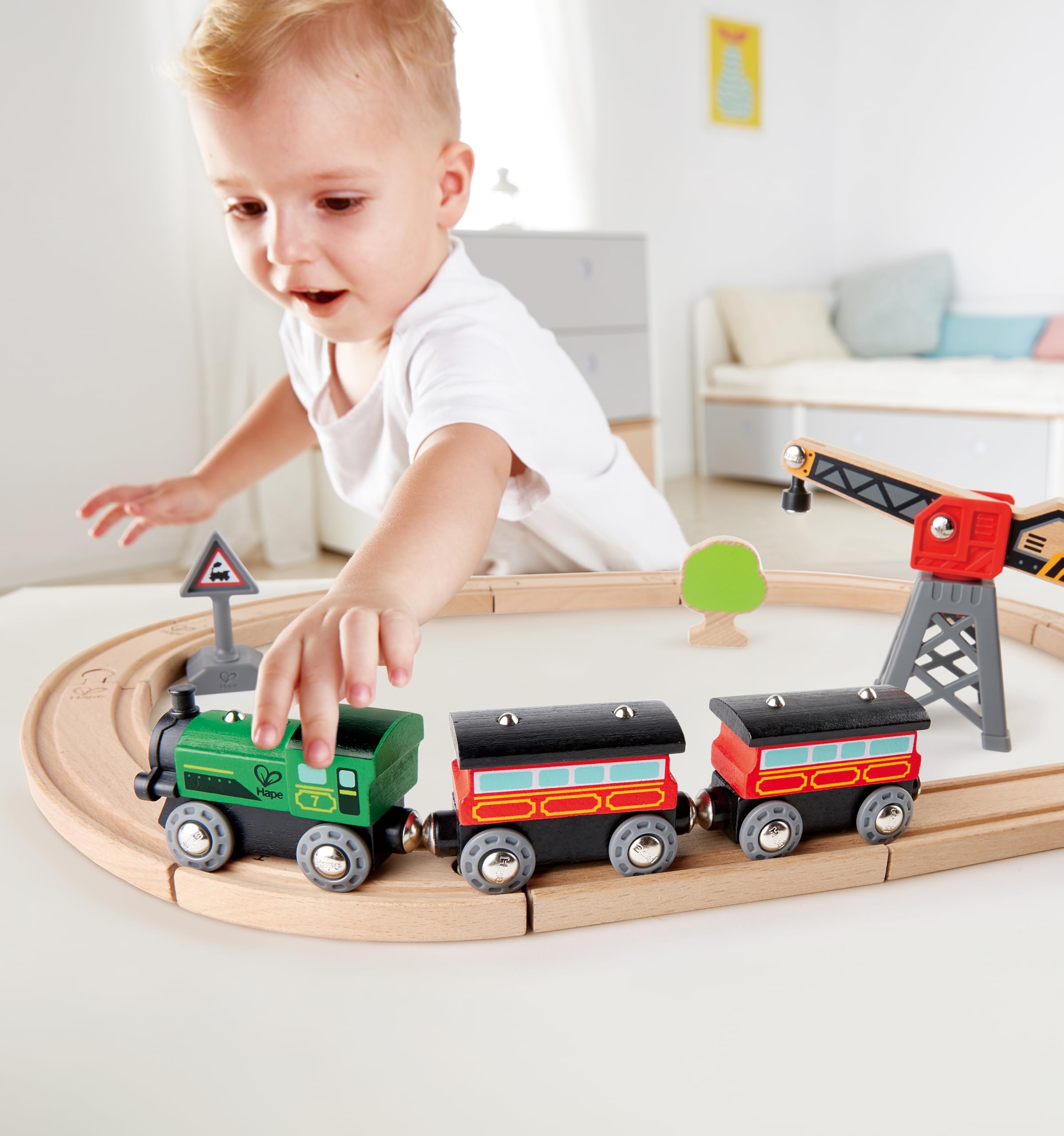 Hape Treno a vapore in legno - Locomotiva giocattolo stile classico con movimento a spinta e giunti magnetici per bambini dai 3 anni