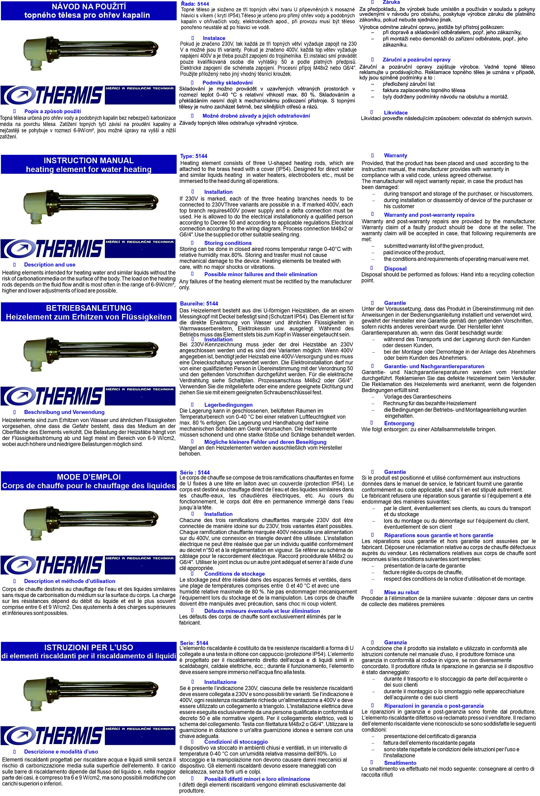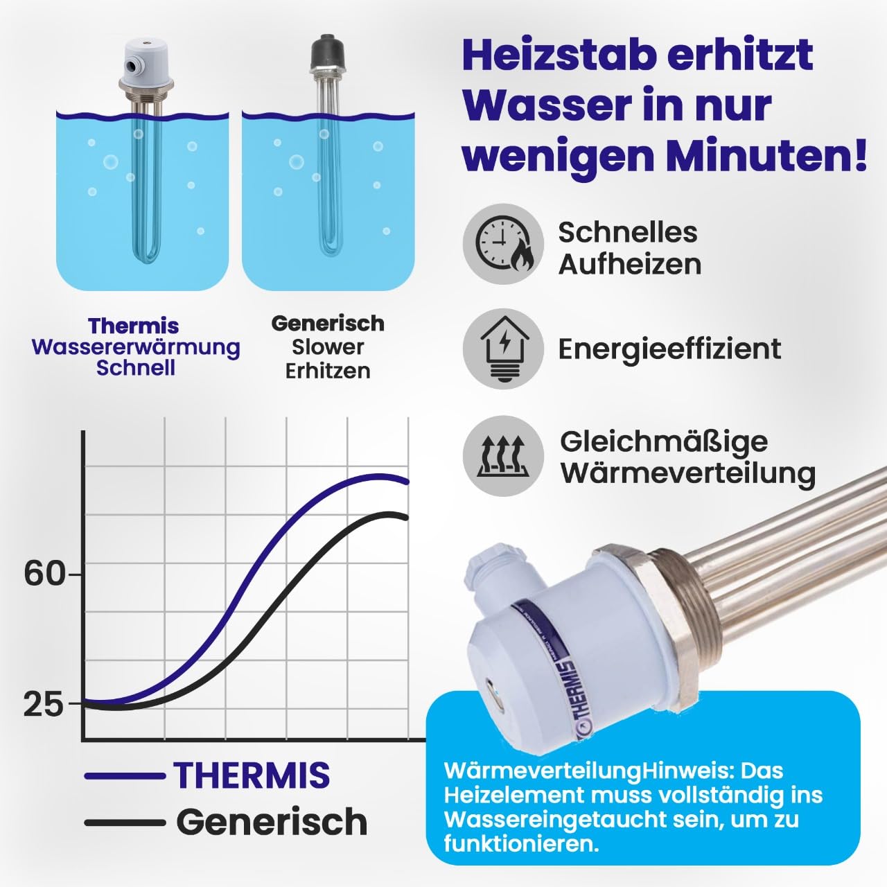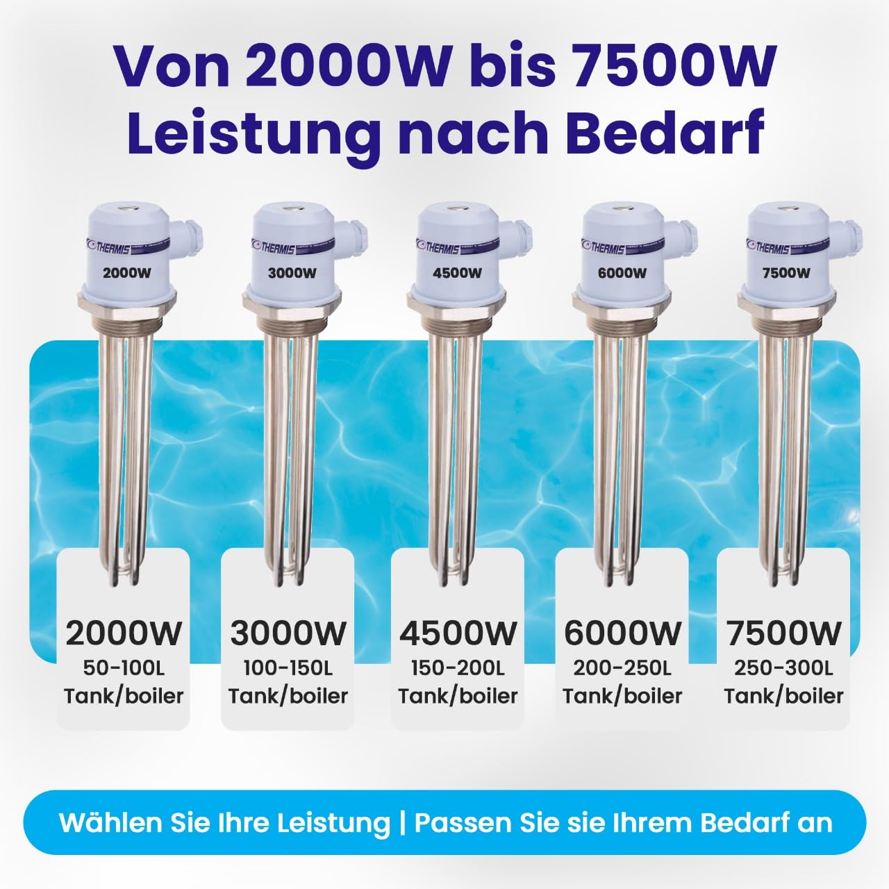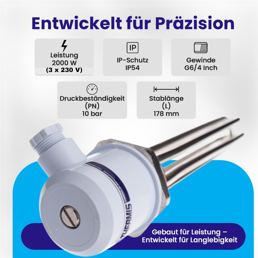 THERMIS 5144 Elemento riscaldante 2000W (230V/3x230V) G6/4" IP 54 Riscaldamento a liquido, Cartuccia di riscaldamento per stufe, caldaie elettriche