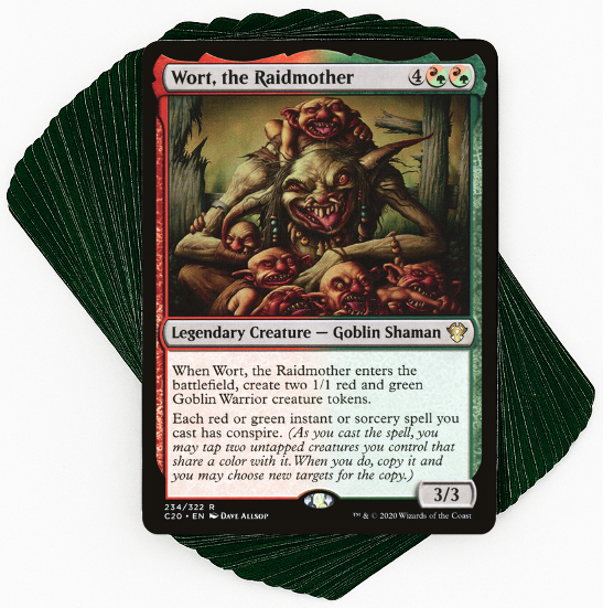 The plan is simple but effective: flood the board with small creatures, then use Wort and your creatures to copy your most powerful instants and sorceries. Wort’s Conspire ability and spells like Increasing Vengeance let you duplicate the most impactful spells in your deck. With enough tokens out, one spell can quickly spiral into an avalanche of copies and overwhelming advantage.