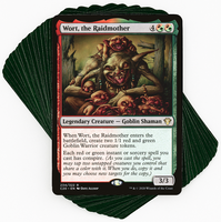Step into the chaos of Gruul spellslinging with Wort, the Raidmother at the helm. This deck combines the brute strength of creature tokens with an arsenal of game-ending spells, each ready to be copied to devastating effect.
