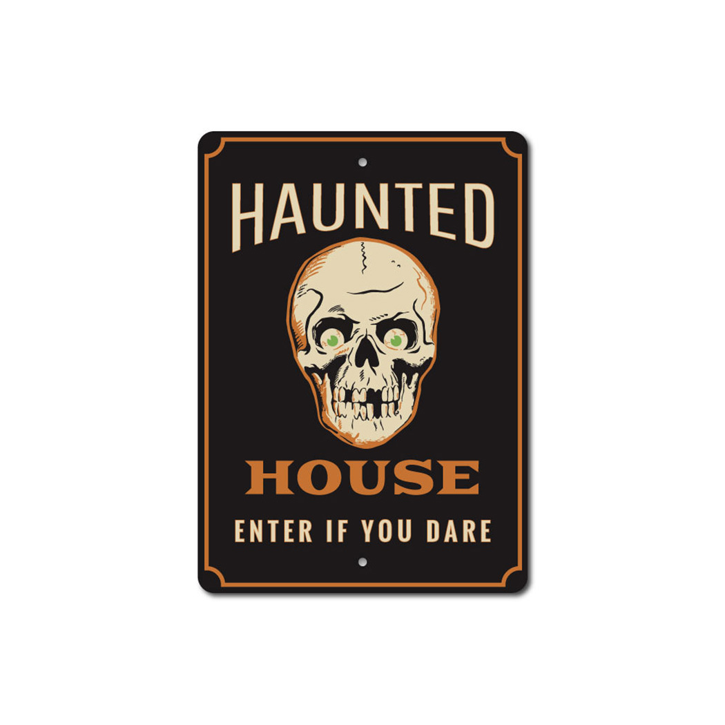 Haunted House, Enter If You Dare, Scary Skull Halloween Metal Sign