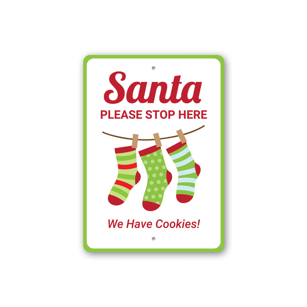 Santa Please Stop Here, Christmas Stockings Sign, Christmas Decor Metal Sign