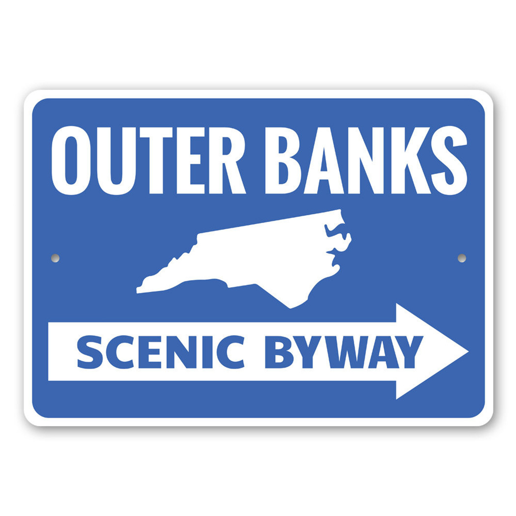 Outer Banks Arrow Sign, Outer Banks Scenic Byway Novelty Road Metal Sign