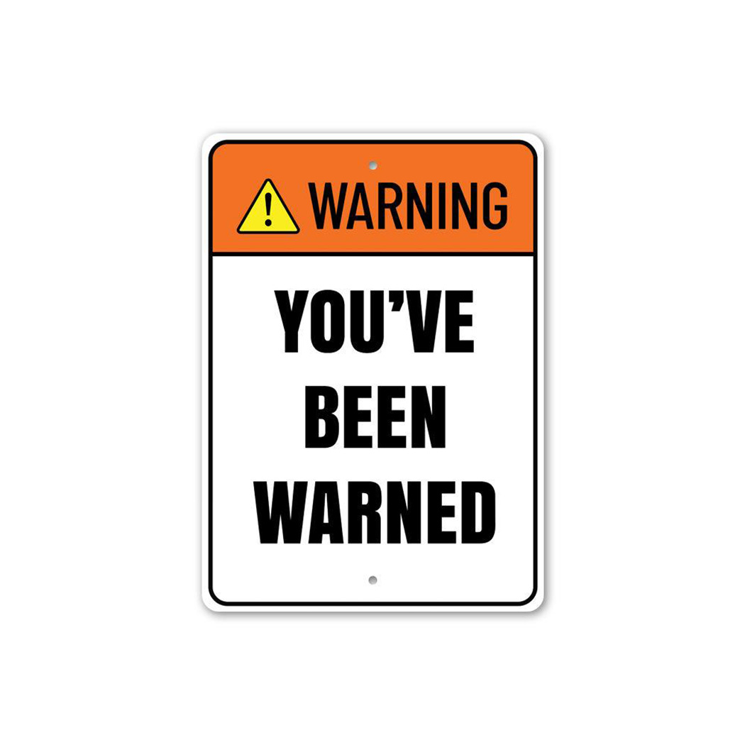 Warning: You've Been Warned Funny Warning Sign, Hilarious Humor Aluminum Sign