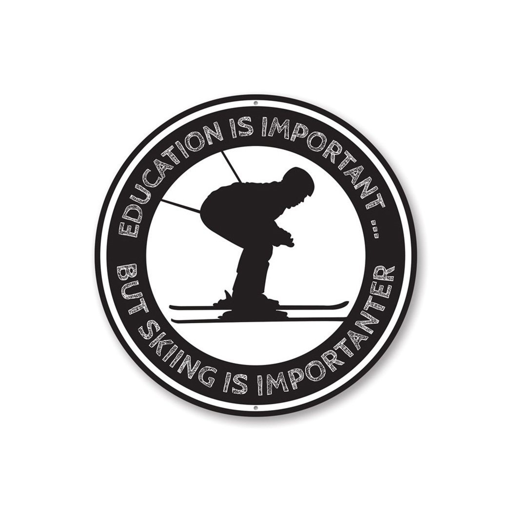 Education is Important But Skiing is Importanter Funny Skier Metal Decor Sign