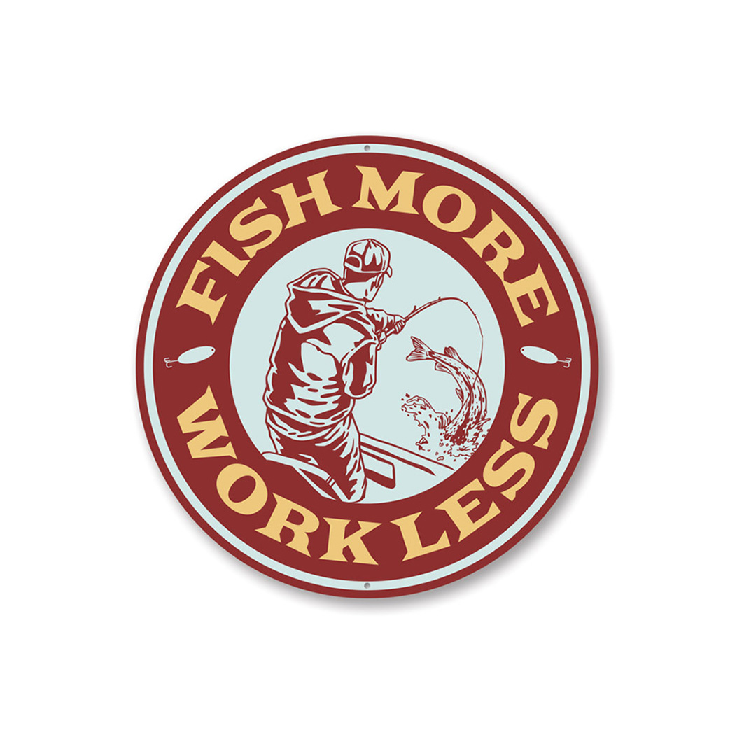 Fish More, Work Less Cabin Sign, Funny Fishing Sign, Fisher Metal Sign