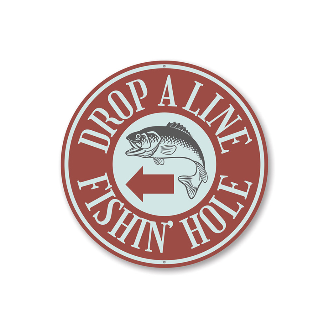 Drop A Line Fishin' Hole Sign, Lakehouse Decor, Fishing Aluminum Sign