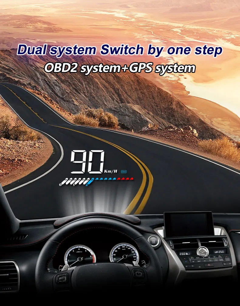 This product is a dual system (OBD+GPS): push left the wave button to choose OBD or GPS system, if you have no operation, after 5 seconds,HUD will automatically enter into the OBD system.