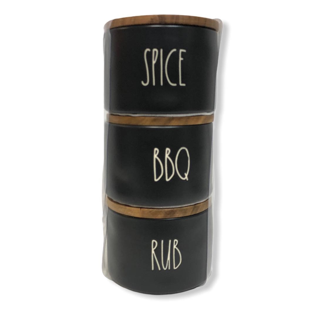 Rae Dunn SPICE BBQ RUB Stackable Black Cellars w/ Wood Caps