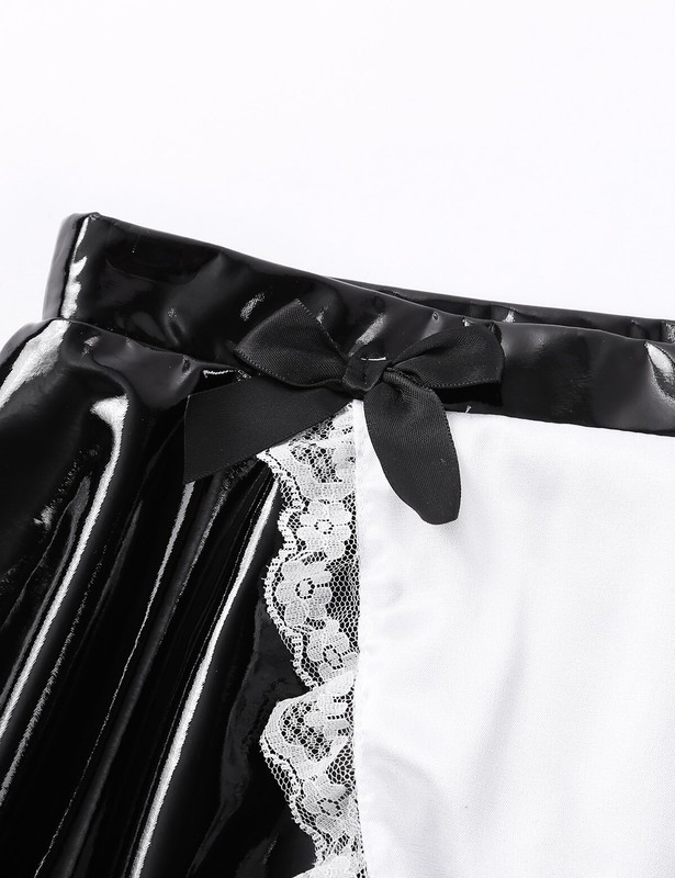 With a satin apron at waist. Made of high quality patent leather, very soft and comfortable to wear, smooth touch feeling.
