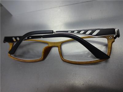 - FRAME COLOR: Light Wood Print Frame with Black Temples