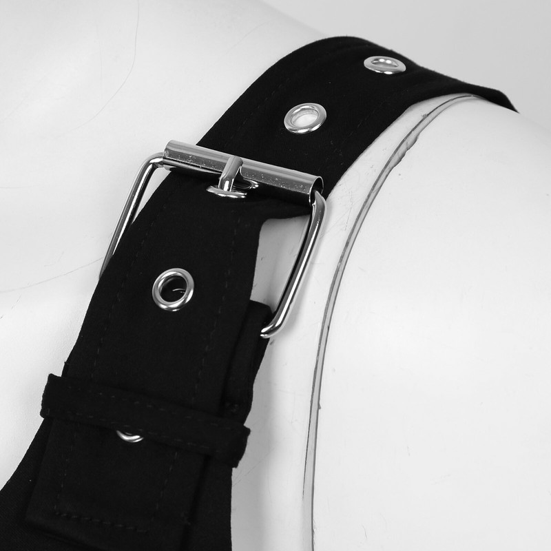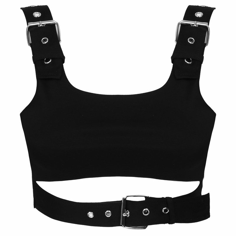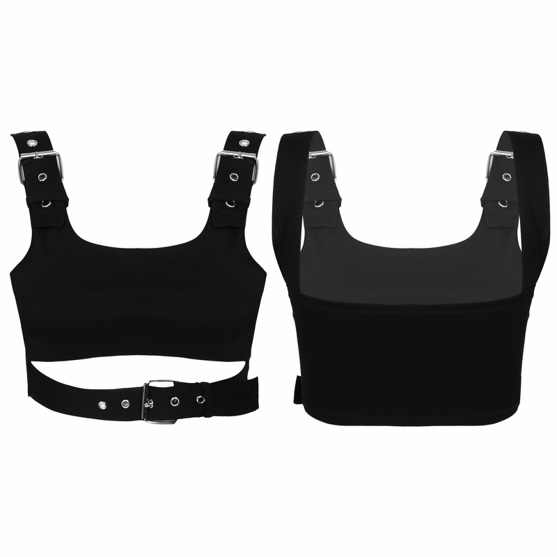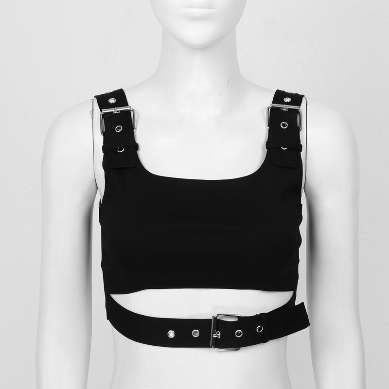 Women Metal Buckle Shoulder Straps U Neck Sleeveless Sash Cross Waist Crop Top.