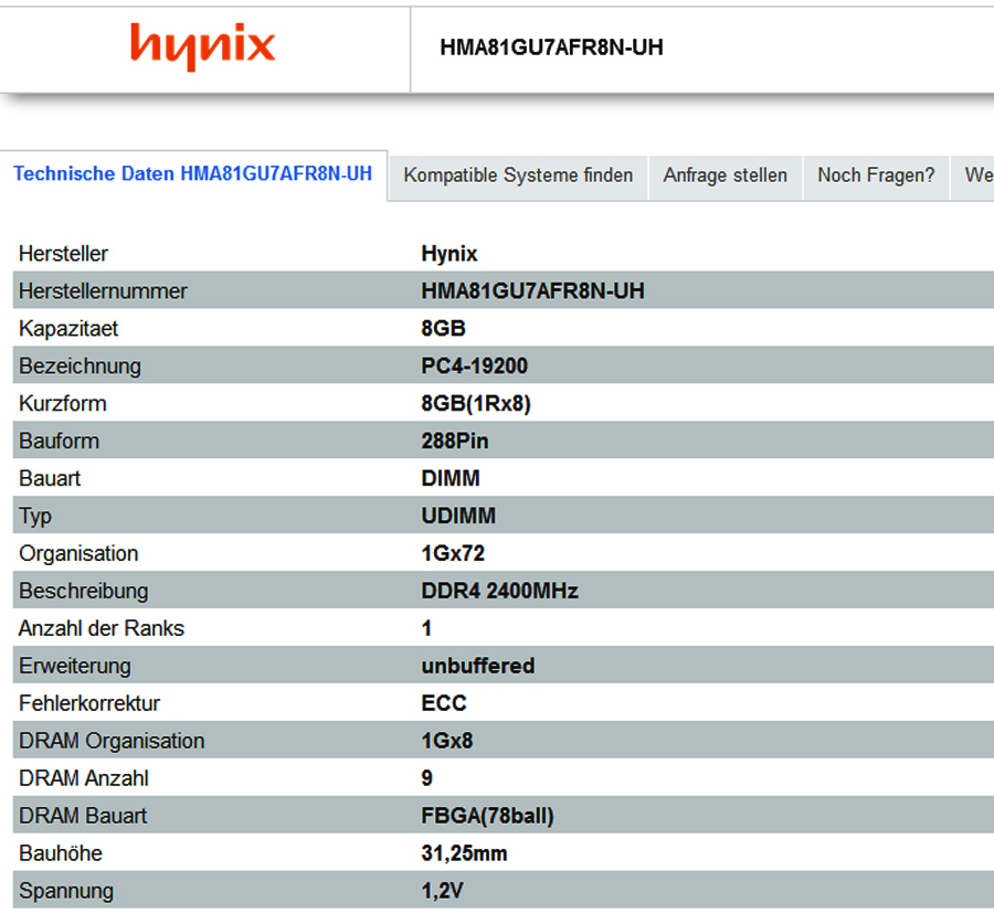 Bezeichnung: Hynix HMA81GU7AFR8N-UH