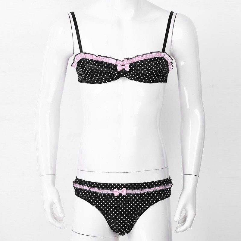 2Pcs men’s sissy polka dot print lingerie set, makes your hot and alluring.