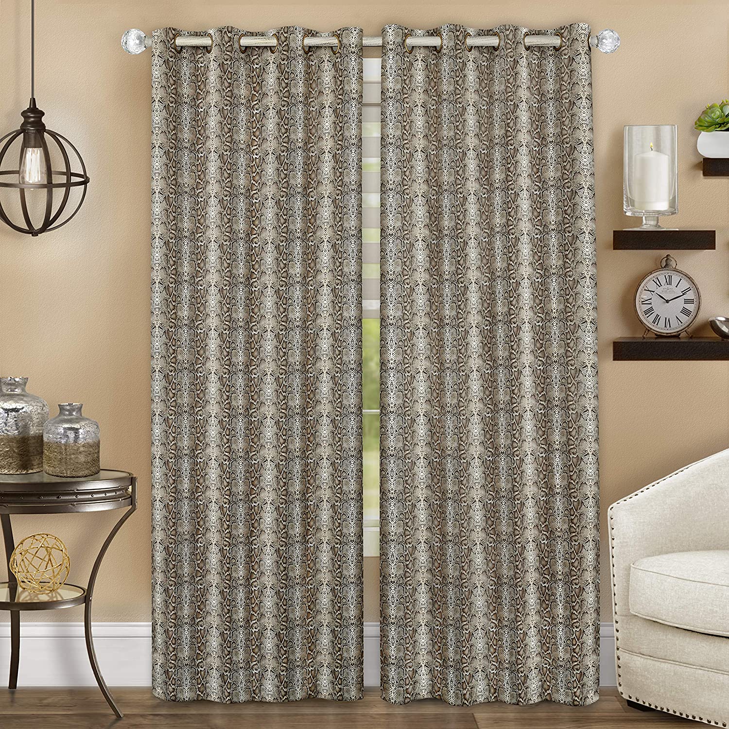 These decorative snakeskin window curtain panels are simple yet sophisticated and are sure to add a rich warm look to any room. Curtains are the perfect decoration for any room in your home. Our snake-skin curtains can be installed in living rooms, dining room, bedroom, kids and dorm rooms. Our window treatments curtains match well with various colors of rugs and furniture. We made this luxurious curtain from high quality 100% double-brushed polyester, not too thin or too thick, just perfect. Buy our curtains for a quick upgrade to give a touch up to your home without much expense. You can even gift it to your loved ones! The snake pattern design provides a beautiful sheen adding depth and grace to your home. These simple yet sophisticated window curtain panels simply give a very nice and warm feel. These snakeskin window are also excellent as blackout curtains as they do an excellent job of blocking out light and maintaining full privacy around your home! Not only that, but our snake-skin curtains are also energy efficient as they help the room stay cooler in the summer and warmer in the winter. This nature friendly design just completes your room setting.