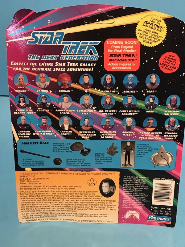 FROM STAR TREK THE NEXT GENERATION, Q IS NEW IN THE ORIGINAL UNPUNCHED C9 PACKAGE.