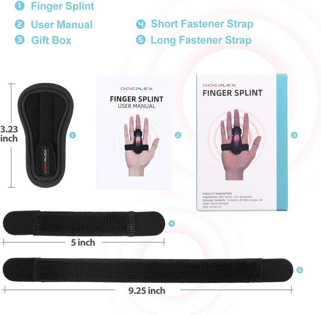 SUPPORT AND IMMOBILIZE ANY OF YOUR FINGERS - Stabilize and support any of your fingers with our Doeplex Finger Splint. Your brace can fit your pinky, ring, middle, and index finger! Get relief from pains, sprains, strains, trigger finger, mallet finger, or a broken finger.