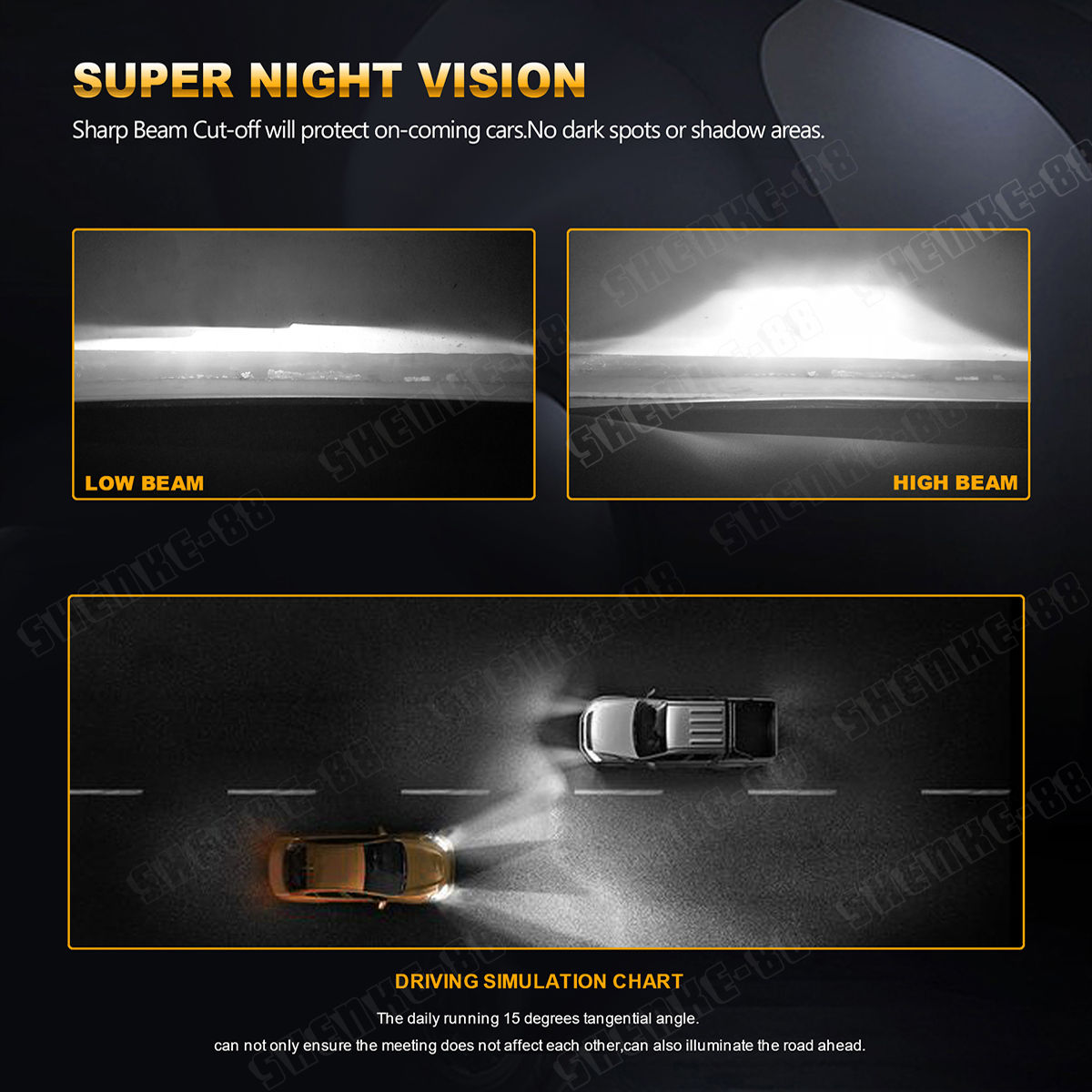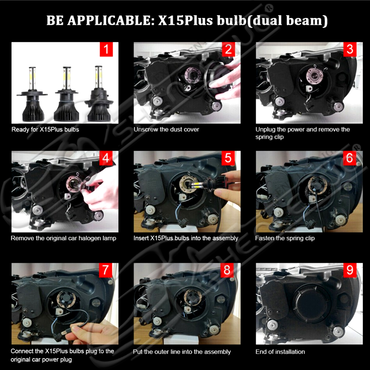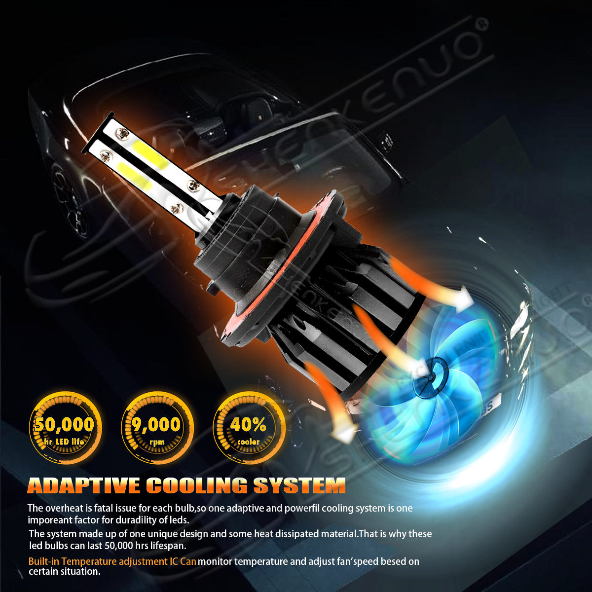 - 4 Side COB LED Bulbs, 360° clear light beam,on each side to provide more lighting effects in lower power consumption. It can be 200% brighter than your factory halogen bulb and more lighting effect in 80 wattages (per set).360° adjustable extremely beam pattern.