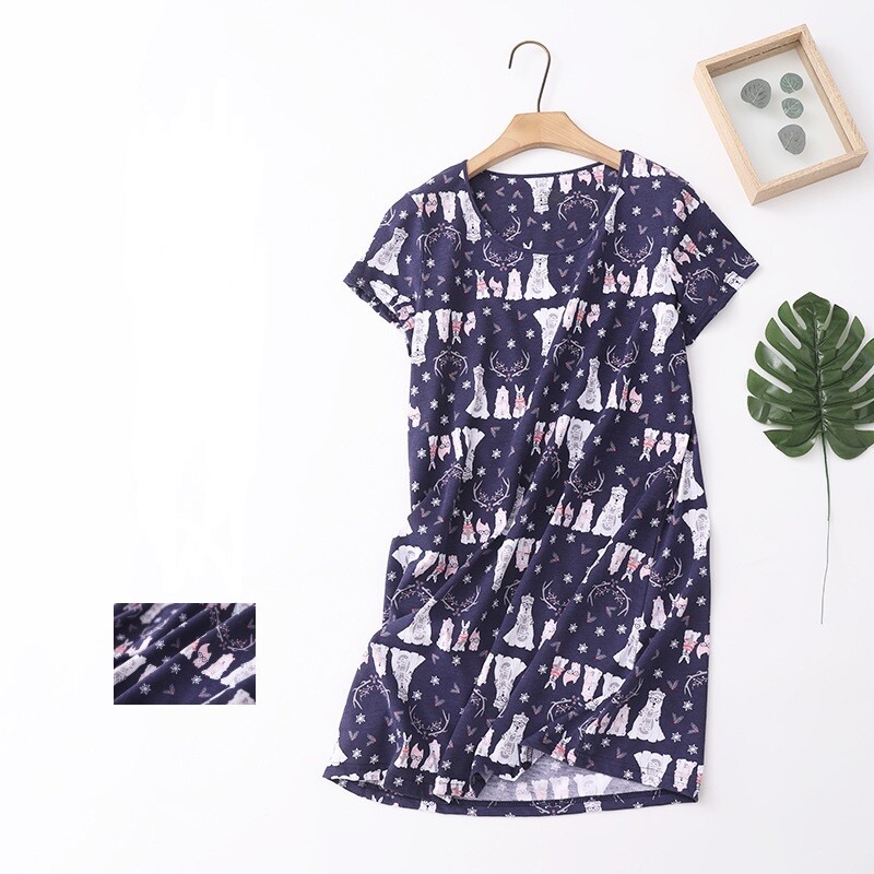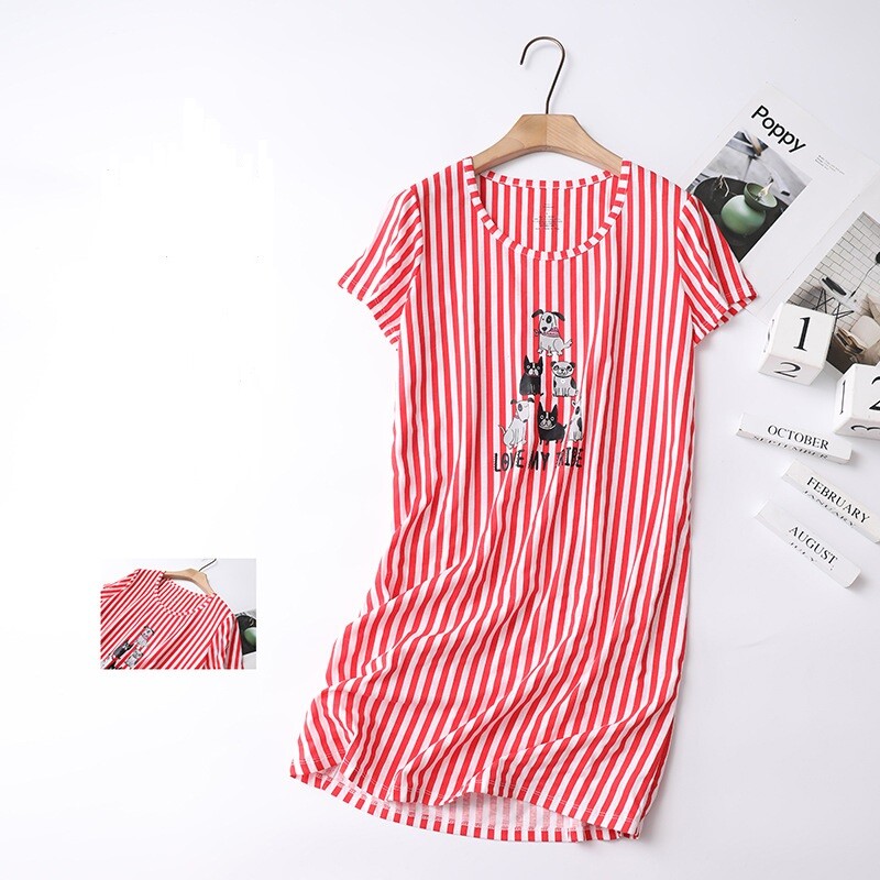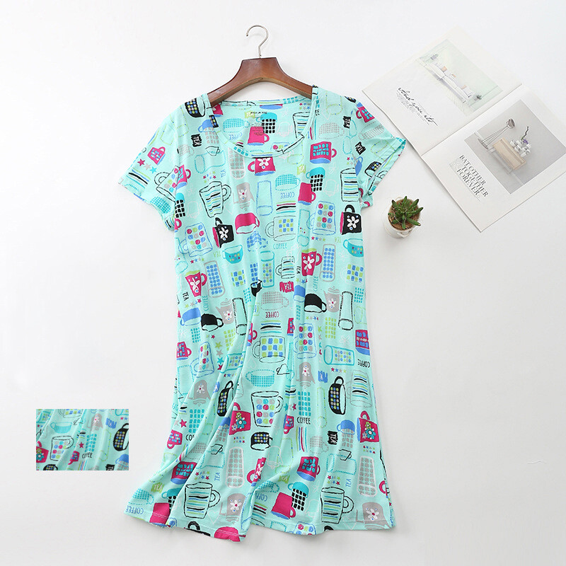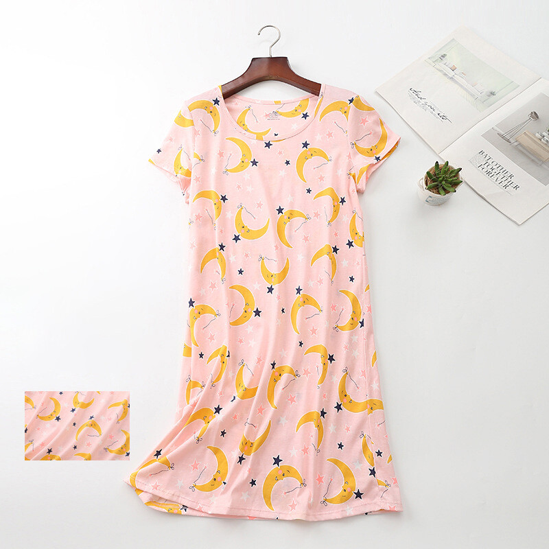 Women's Sleep Shirts Cartoon Sleepwear Short Sleeve Night Gown T Shirts Dress