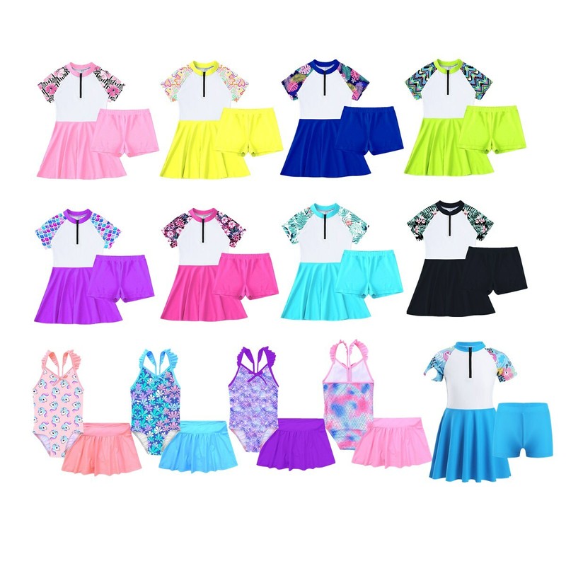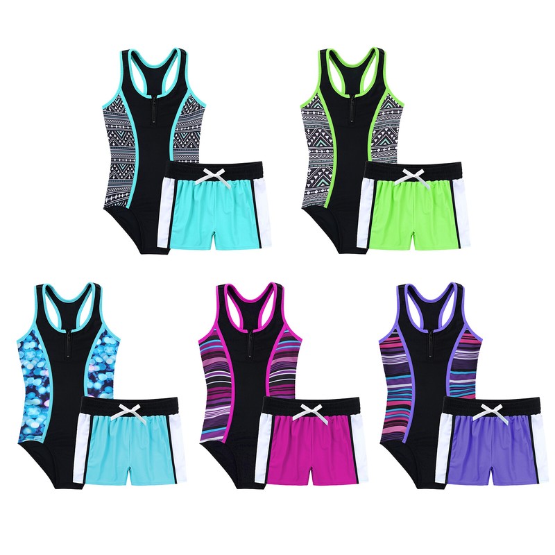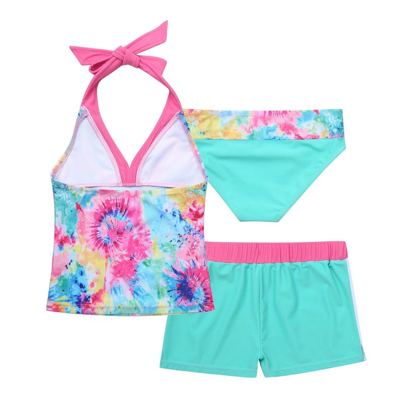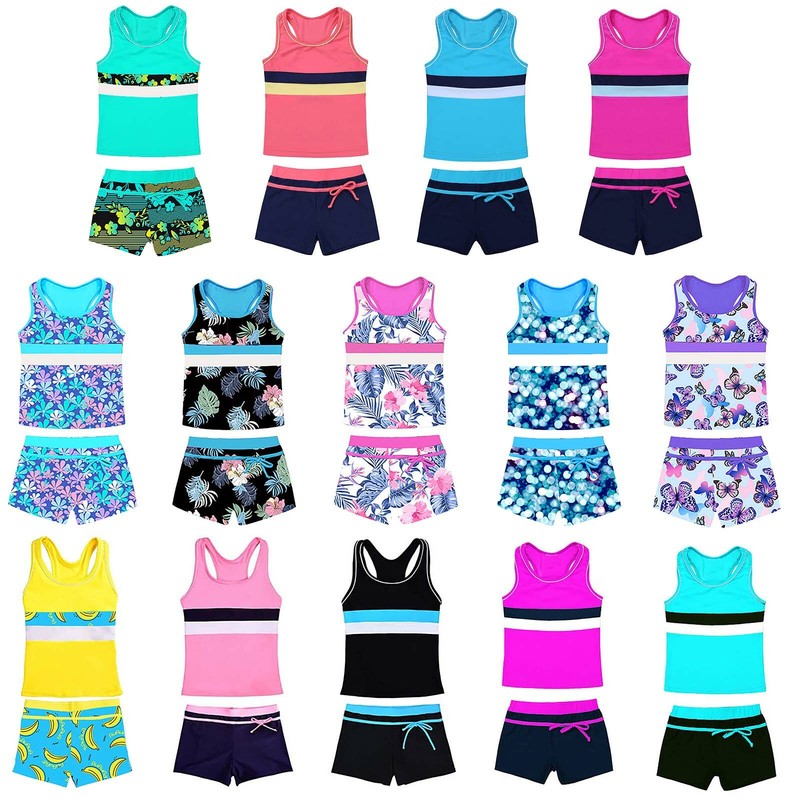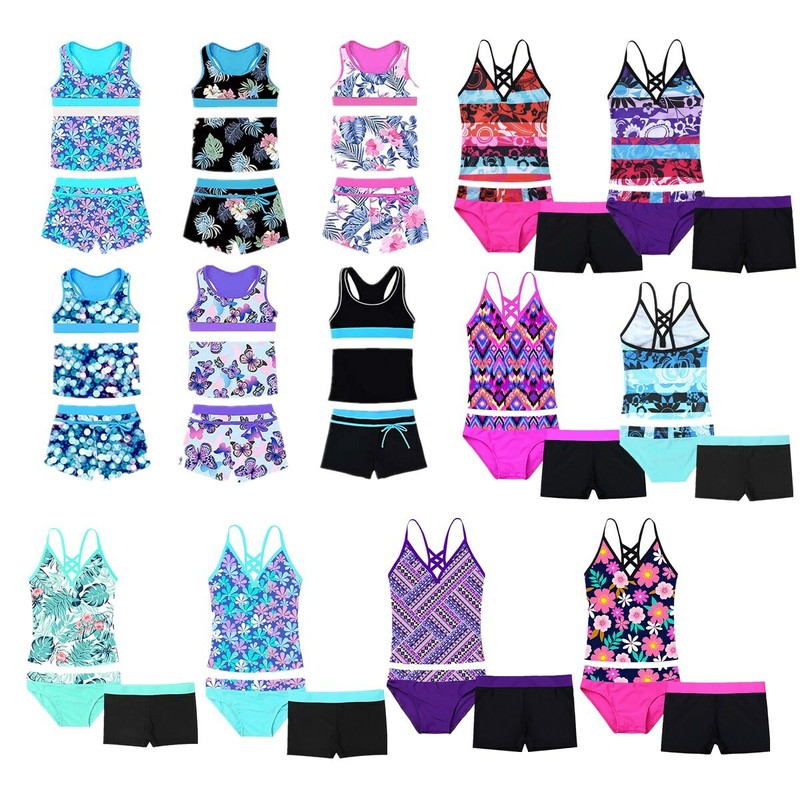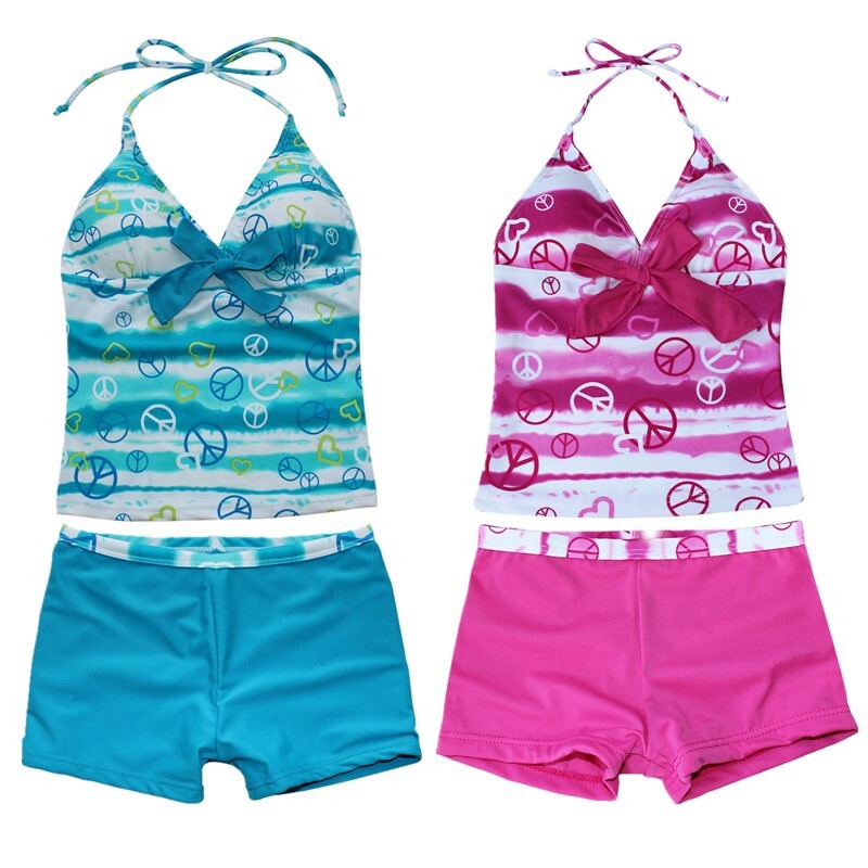 Mädchen Zweiteiliger Badeanzug Ärmelloses, kreuz und quer bedrucktes Oberteil mit Boyshorts.