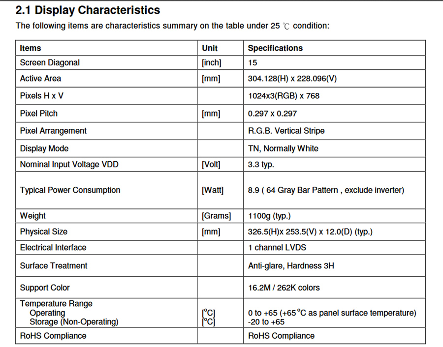 15` (38cm) Auo Au Optronics TFT Affichage G150XG01 V.1