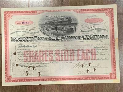 | BOSTON ELEVATED RAILWAY COMPANY 1909 COMMON STOCK CERTIFICATE $100 EACH |